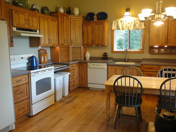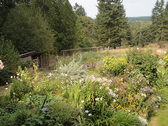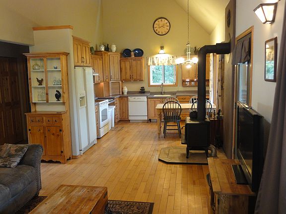 This is a Gardeners Paradise with Flowers Galore! Home is a 3 bedroom, 1.75 bath,remodeled kitchen, with wood floors,tile bathroom floors, pine cabinets and doors, vaulted ceiling, 816 sq ft unfinished basement, stone walkways, BBQ pit and a Metal Roof on 1.1 acres. There is a small orchard, fruit trees,chichen coop and tree house on the property too. Enjoy the beauty and privacy of your patio from the back yard.