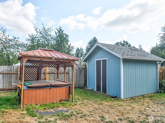 Welcome to your peaceful retreat in Scenic Shores! This cozy 3-bedroom, 2-bath rambler features vaulted ceilings and a fireplace in the open-concept living area. The kitchen is a chef's dream with a commercial-grade oven and stove.Enjoy the outdoors with covered front and back porches, a fully fenced backyard with a hot tub, and a versatile outbuilding. Located on a quiet cul-de-sac, this home offers access to Lake Lawrence, a community park, and is close to Yelm schools, shopping, and dining, with an easy commute to JBLM. It’s the perfect blend of comfort and convenience!