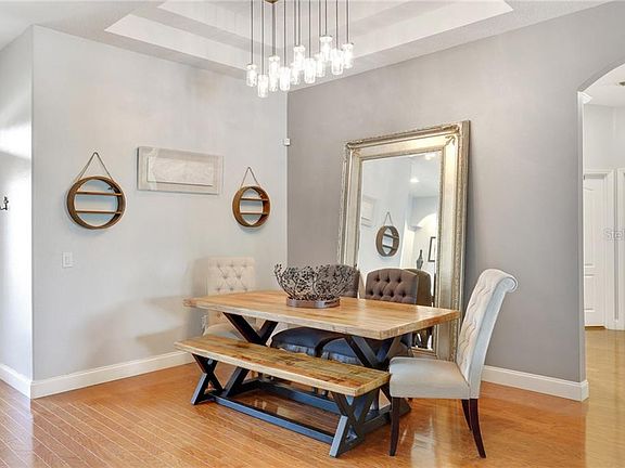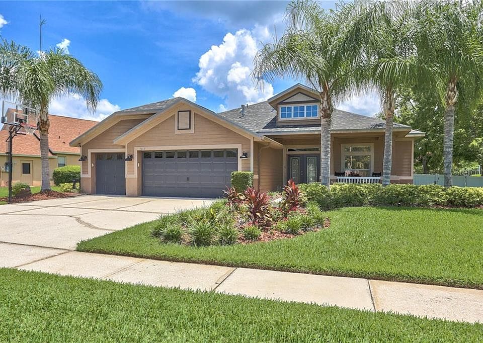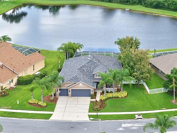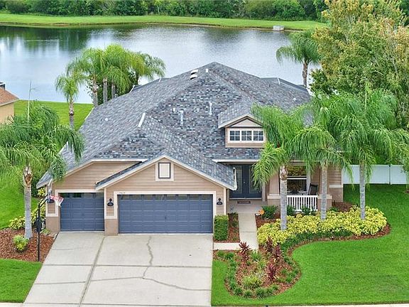 Welcome to Van Dyke Estates, a small community with multiple cul-de-sac's and tree lined streets. Located in 3 highly desirable A plus rated school districts: Schwarzkopf, Martinez and Steinbrenner. Arguably, one of the best homesites with a cul-de-sac in the front, lake and conservation views in the rear. Larger pie shaped lot with a side fence and privacy galore. Brand new roof installed in 2019. Kitchen includes Cambria quartz counters, bohemian styled 42" cabinets, stainless gas appliances, custom Italian backsplash and a breakfast bar. The breakfast area has an amazing seamless window with draw dropping views of the lake/pool and conservation. Wide open spaces & split plan offers a nice sized Master with multiple windows for natural light, huge master bath w/double vanities, separate shower and soaking tub and a large walk in closet with custom shelving. Opposite the master is the guest room featuring a walk in closet with custom shelving & remodeled pool bath. 2 secondary bedrooms share a perfect remodeled bath. Inside utility with gas appliances. Large Dining room is perfect and open to the family room is also adorned with custom lighting. Huge office/bonus room/parent cave is the perfect getaway and overlooks the charming front porch. New interior paint, LED lighting, 51/2" baseboards, Florida friendly landscaping including gorgeous palm trees. Super quiet and quaint community with no CDD and easy access to all major roads, shopping and dining. This farmhouse meets modern home is move in ready.