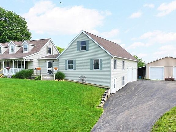 3 Bedroom, 2 bath cape cod on 6.64 acres in a beautiful rural setting. Primary bedroom and laundry on the main floor. Features include a large family room, dining room, and eat-in kitchen. Full walkout basement with workshop or finishing potential. Outside you'll find a 32x40 outbuilding with water, gas, and electric, plus a 24x12 attached lean-to, ideal for storage, projects, or equipment. Forced air natural gas heat and central air. New roof in 2024. A rare find with the space, setup, and flexibility to fit just about any plan.