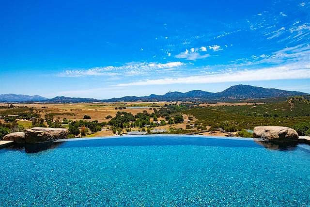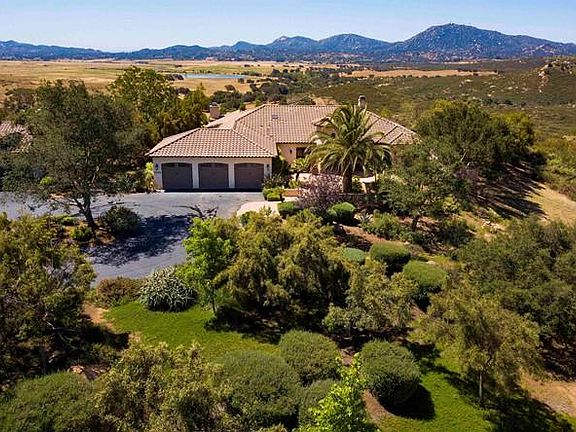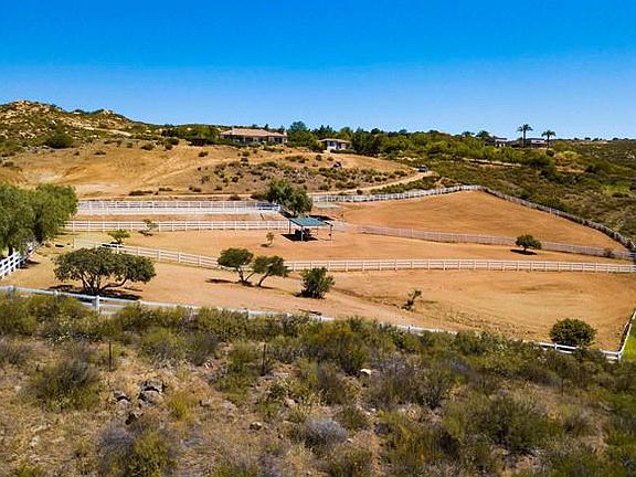 Located in West end Ramona's gated community of Highland Hills Estates Spectacular custom home / equestrian facility with breathtaking views across and bordering the 3,000+ acre Grasslands Preserve. Riding and Hiking trails. 3,400 sf main residence, 767 sf second dwelling unit / ADU with approved plans to expand to 1,200 sf. Can be rented out for add'l income. Newly remodeled vanishing edge saltwater pool & spa with all new equipment. Master retreat with fireplace and luxurious master bath. Center island kitchen with granite counters, five burner stove, double oven, Outdoor bbq and refrigerator. Equestrian facilities comprise of MD breeze way barn, Automatic water buckets, Fly guard system, stall mats, 60x120 lighted arena, Hot walker, wash racks, 3 large pastures with sprinkler system, Paid for solar (68 panels) and back up generator, assorted fruit & avocado trees, mature oaks, pepper & palm trees. 15,000 gallons of water storage. Trailer / RV parking area with 30 amp hookups