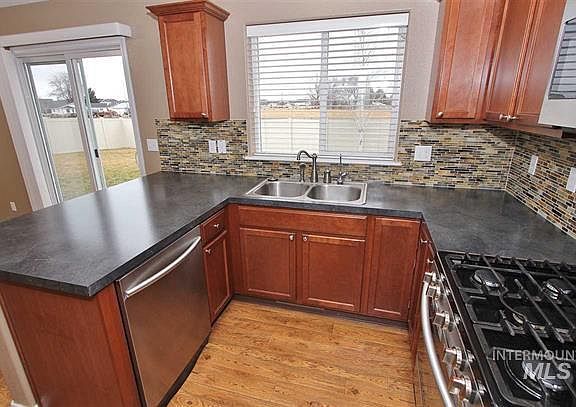 This property makes use of every bit of space, functional layout includes separate living quarters, vaulted ceilings, good size kitchen that features cherry oak cabinets, full tile back splash, stainless steel appliances,gas stove and large pantry. Three bedrooms upstairs including master and one bedroom main floor. Samsung front load washer and dryer are included (only two years old) This homes offers a a great view of the Boise Mountains, no rear neighbors, vinyl fencing through out. Check out the community pool while you are in the neighborhood. Tenant responsible for utilities, home's general cleaning and maintenance, yard work- mowing, pruning and trimming. Tenant must agree to online payment system. If a pet is approved $250 one-time non-refundable deposit. Please apply through Zillow.
