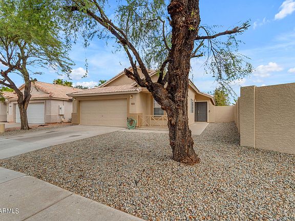 Single-Story Home in a Great Chandler Location. This home offers a comfortable, open layout with a great room concept. Inside, you'll find wood-look ceramic tile flooring, new carpet, and fresh paint throughout. The kitchen has been updated with freshly painted cabinets, brand-new quartz countertops, upgraded stainless steel appliances, and a large island that's perfect for cooking or gathering around.Both bathrooms feature updated vanities, and the home is filled with plenty of natural light. The backyard is north-facing, with a nice grassy area and mature trees. Located just a few miles from the freeway and minutes from downtown Chandler, this home is in a convenient spot close to shopping, dining and more! Roof will be replaced and the a/c unit is only a few years old. No HOA.