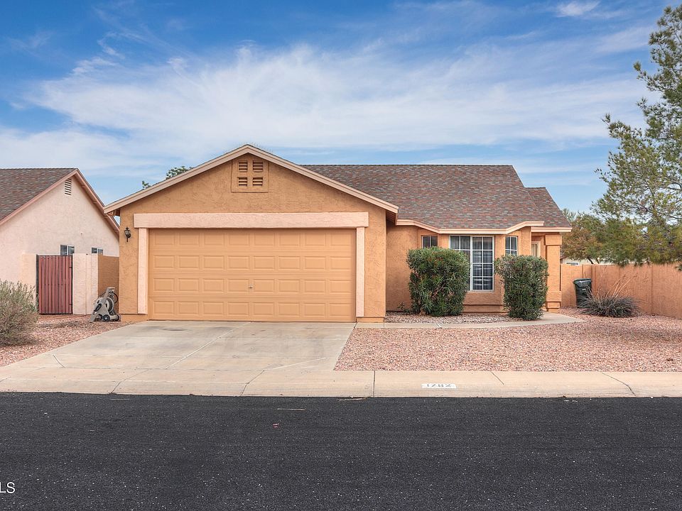Home features 3 bedrooms, 2 bathrooms, new carpet, fresh paint, security door and vaulted ceilings. Kitchen offers Bay window, eat in area, pantry and island. Primary owners en-suite has dual sink vanity w/drawers & walk in shower. Backyard is landscaped with rock. Garage has epoxy flooring & utility sink. HVAC is 2 years old. This is a steal of a deal! Please call today to schedule your private showing!