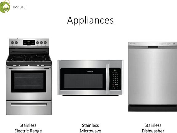 - Included: Dishwasher, Disposal, Microwave, Electric Oven, Cooktop