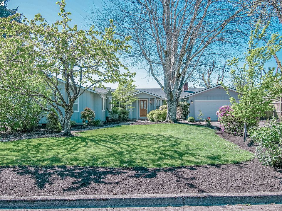 Spacious 4 bedrooms plus office and 3 baths in this beautifully remodeled and updated one level home on large .30 acre lot in Ferry St Bridge! This home features newer roof (2021), 95% gas furnace, central air, gas water heater, solid core wood doors, window seats, new interior paint and leaf guards on gutters. The livingroom features a woodburning fireplace with built-ins on each side. Lovely hickory hardwood flooring through most of home. Gorgeous new kitchen with quartz counters, subway tile backsplash, white painted cabinets, built-in hutch, farmhouse sink, custom range hood, pantry, garden window and stainless GE Profile appliances including 2 door-2 drawer refrigerator, gas range/oven and dishwasher. Sliding barn door off kitchen leads to huge vaulted great room and dining area. Utility room with sink and updated bath with shower off this area. French doors from the nook and family room lead to covered patio with skylights. The primary suite features vaulted ceilings as does the large office with French doors. Additionally the primary suite features two closets and bath with 2 headed shower and vanity with 2 sinks. Main bath features 2 sinks, tub shower, tile counter & flooring and wall hung toilet. Primary suite and main bath offer buyer room for their own personal touches. Private fenced backyard features a pond with 2 waterfalls, raised garden & flower beds, large lawn area, an apple tree and a shed! Double car garage with two openers and a workbench. Don't miss this beautiful inviting one level home in sought after area!!