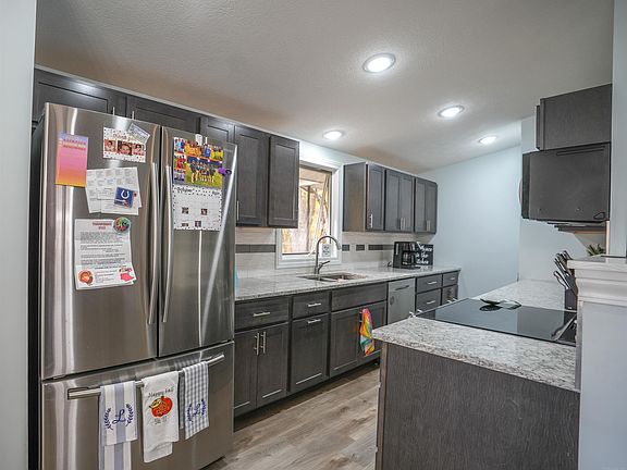 Located just outside of town, up a long drive off of the main road, is where you will find this beautifully remodeled paradise. This 4 bed 2 bath ranch home, with a basement, is a must see! Inside you will be welcomed by the open concept, vaulted ceilings, vinyl plank flooring throughout, built in book shelf, and an abundance of lighting. The kitchen offers beautiful dark cabinets with slow closing hardware, a crisp and clean white backsplash, quartz countertops and two large pantries. The large, 8 person eat-at island, provides extra cabinetry as well as a built in cooler to keep your favorite drinks and snacks at finger tips reach at all times! Three of the four bedrooms are located on the main level. One of which includes the en-suite master bed/ bath which boasts a walk-in tile shower and double vanity. In the winter curl up beside the wood burning fireplace and stay cozy in the living room. Exterior features include vinyl siding complimented by dark brick accents, newer roof, and a covered front porch. Sit out back on the large deck or relax by the fire and enjoy the serenity, watching wildlife in the woods behind your house or the peaceful views of the river across the road. This setting offers a little bit of everything you need so book a showing and come appreciate what it has to offer!