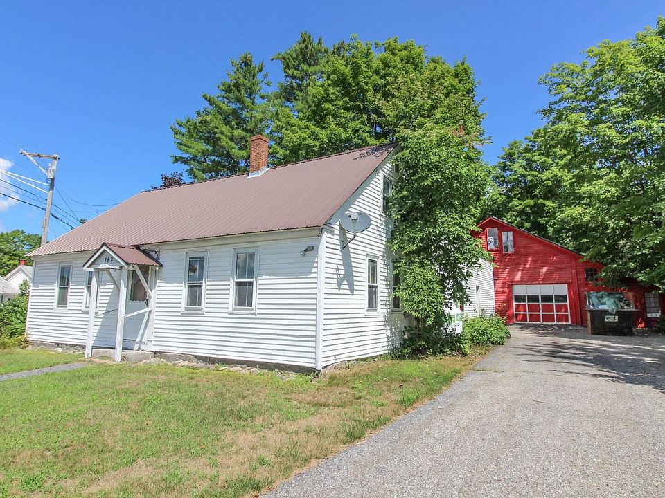 Very affordable cape style home with lots of character, large open rooms and an impressive back yard. Ample parking in the paved driveway for multiple vehicles and potentially vehicle storage inside the barn or side building as well. The barn appears to be in good condition with solid wood trusses and a poured concrete foundation on the side portion. Two levels of space in the barn with each access directly into the property or to the backyard. The yard space is impressive and there is natural tree barrier between Route 2 and the yard offering privacy and ample room for gardening, and outdoor activities. There is a mudroom upon the entry for all your items. On the main level you have a large kitchen with lots of cabinet and countertops as well as a breakfast bar for additional seating. There is a living room and dining room off this as well as a full bath. Laundry is also on the main level for convenience. Upstairs you have 2 decent size bedrooms and one other small room that could be a bedroom or office. There is also a bonus room off this for additional storage. The basement is partial and access from inside the property, the hot water heater is down there with the newer propane heating system up on the main level for easy maintenance access if needed. Vinyl siding and metal roof makes for easy long term care with the property. Positioned between Rumford and Bethel as well as easy access to Route 232 towards Oxford.