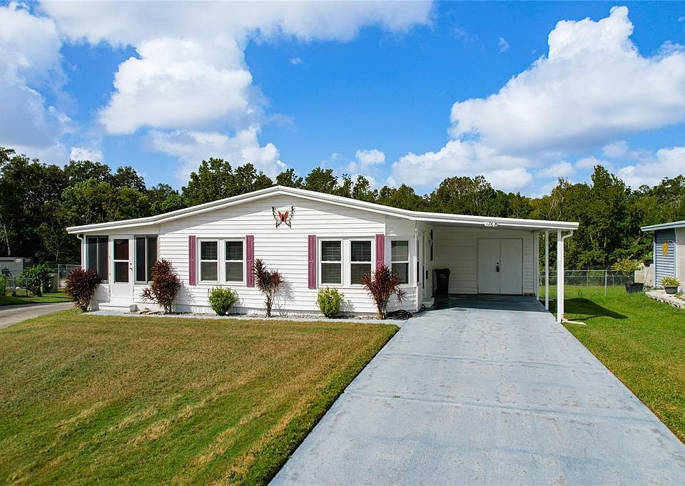 Check out this wonderfully maintained 2 Bed 2 Bath Home that is located on one of the best lots in the Foxwood Estates 55 plus community. This home features beautiful flooring, newly installed windows, new skirting and recently installed new windows throughout!! This is a very active neighborhood with many events planned every month. This home also has an incredible open back porch and a screened in room, carport and golf cart parking. Don't forget all the amenities that include a large clubhouse, game room, billiards room, sauna, fitness center, library, large, heated pool, pickle ball court, shuffleboard courts, bocce ball court, horse shoe pits, paved walking path around the lake and so much more! Call today for a showing!!