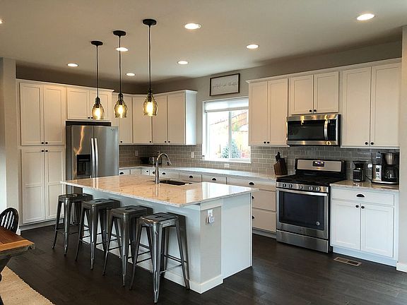 This beautiful paired home built in 2018 has mountain views and is placed in an inviting, friendly neighborhood. The open concept main floor includes a stunning kitchen, with white cabinetry, quartz countertops, a farmhouse sink, gas stove, 9 foot ceilings and all stainless steel appliances. Custom upgrades are added throughout the entire home, including; a shiplap fireplace, window treatments, floating shelving and dark wood floors. The upstairs has 3 bedrooms, 2 full baths (½ bath on the first floor) as well as a second floor washer and dryer. The master suite with mountain views includes a walk in closet and a double vanity sink as well as a spacious tile master shower. This home has a finished basement which could be used as an office or additional guest space. This home is on a corner lot, completed with irrigation and an additional patio for entertaining or relaxing in the evening. Don’t miss your chance to fall in love with this beautiful home! This home is very well maintained and is completely move-in ready. HOA dues $33/Month. Washer and dryer included. Mitigation system installed. List price $447,900 Please call to schedule a showing: 248-884-6715 **Happy to work with a buyer who has an agent**