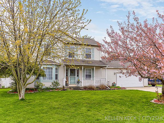 Welcome home to this updated 4 bed, 3.5 bath 2-story in the award-winning Byron Center school district! Situated on a large lot, and full of custom features, this home is sure to impress! The main floor boasts an updated kitchen with custom farmhouse sink, as well as formal and informal dining, and new flooring throughout. Main floor laundry and 1/2 bath, mudroom area with lockers, a large living area and additional flex space. Upstairs you'll find new carpet through the large master suite, with vaulted ceilings and W/I closet, along with 2 other bedrooms, and another full bath. In the L/L you'll find yet more entertaining space! A huge rec room with built-ins, another living room, a 4th legal bedroom and another full bath! Outside enjoy time on the large deck and fenced in yard!