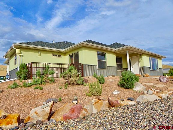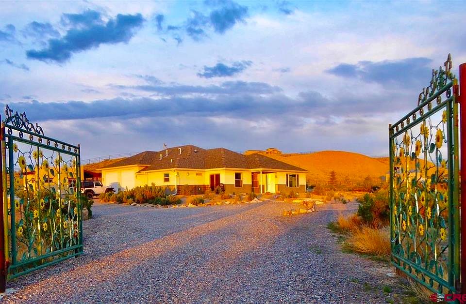 This newer built 3 bed / 2.5 bath home is situated on 3.25 acres of serene landscape, yet is only minutes to the conveniences of Montrose. With breathtaking views in every directions, the house features cool concrete floors throughout, integrated indoor and outdoor living spaces, a gourmet kitchen with induction range and soapstone counters, a huge master suite with his and hers closets, a walk-in dog shower, and over 1000 SF of attached garage space with 10' doors, and RV hook-ups/clean-out. Additionally there is a steel carport and pergola, a separate artist studio with a sauna, and a shed for yet additional storage. Most of the 3 acres has been xeriscaped and features rock sculptures and thoughtful hardscaping. This quality home is priced to sell and will likely move fast.