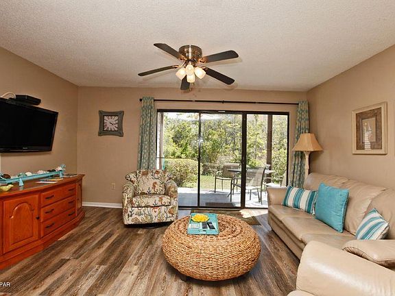 CURRENTLY UNDER CONTRACT, SELLER ACCEPTING BACK UP OFFERS. 5 minute walk to the Beach or take your golf cart and pay less than 200k for this west end of Panama City Beach Furnished i 2 story condo which is a townhome located across the road from the Beach within 50 ft of the pool. 310. a month includes Insurance on Building , Accounting; Dumpster; Exercise Room; Ground Keeping; Pest Control; Pets; Pool; Repairs/Maintenance; Security; Trash Disposal; TV Cable All you pay is Electric Vacation Rental history was squashed after the Hurricane because Seller had Hurricane Victims staying there. From end of May til Aug 1st produced 14k approx in Vacation rental income. This unit has great potential as vacation rental and or a second home. Tennis Courts and 2 Pools and lots of grassy areas