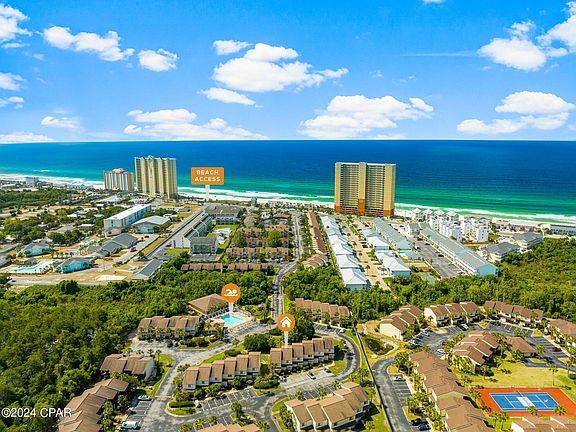 Portside is located in the west end of Panama City Beach and this beautiful unit has been owner occupied and well cared since 2017. It's now available for new owners to enjoy. This unit would also make for a good rental opportunity that sleeps six. There are two bedrooms, a full bath and a half, and spacious living room with pullout sofa, leading to the patio. The unit is located in N row. The N row is extra special having the most beautiful backyard greenspace area in Portside. Enjoy this serene setting and views from the comforts of your living room, patio, upstairs primary bedroom, and private balcony with sunsets. N2 is located near one of three pools on meticulously maintained grounds with luscious landscape. Enjoy access to three pools (one heated), a jacuzzi, a kiddie pool, tennis courts, shuffleboard, and fitness center. Take advantage of the easy Gulf beach access entrance across the street from Portside. The HOA is well managed with reasonable fees. 24 hr Security. Located approximately eight miles to 30A, makes Portside 30A easy. Just three miles to Pier Park, Aaron Bessant Park, and Frank Brown Park for all your restaurant, shopping, and entertainment pleasures. Portside is a quiet, tranquil, pet friendly, and perfect for long and short term. Make Portside Resort part of your Panama City Beach life. It's better at the beach.