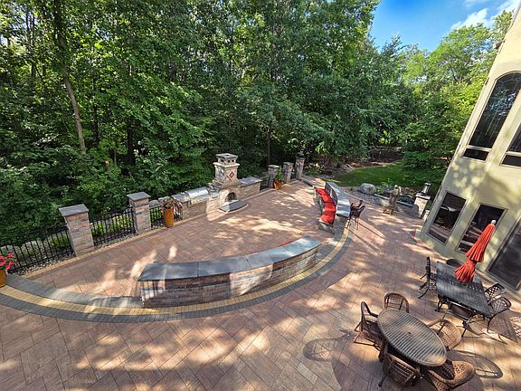 Walnut, stone & tile floors, Crown Moulding & Custom Drapery throughout. The Beautiful Sunroom has mosaic tile & overlooks the deck and the expansive patio with built in seating, custom outdoor kitchen and fireplace.