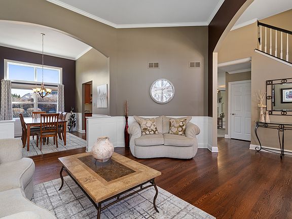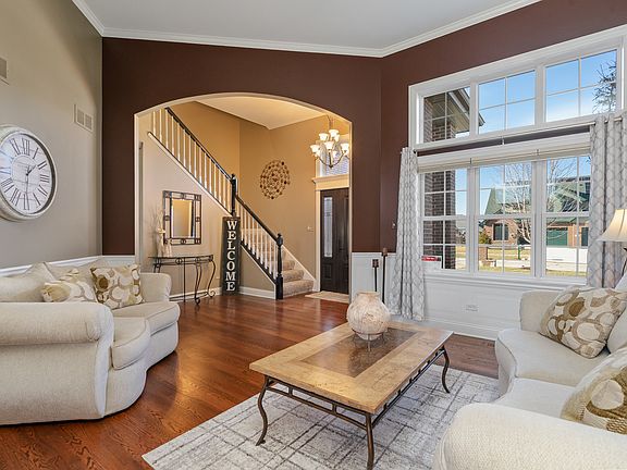 MULTIPLE OFFERS RECEIVED. HIGHEST & BEST REQUESTED BY 9AM MONDAY, JANUARY 19TH. Prepare to be captivated by this stunning and spacious Wrightwood model nestled in the highly sought-after Radcliffe Place. Beautifully updated and richly appointed, this exceptional residence offers timeless elegance, thoughtful upgrades, and resort-style amenities throughout. A sun-filled formal living room sets a refined tone, showcasing exquisite wainscoting and crown molding. The home offers five generously sized bedrooms and 31/2 luxurious baths, with the first floor updated in 2018 and the second level renovated in 2020. Enhancements include Marvin Infinity windows (2018) and new interior doors (2020). Entertain effortlessly in the formal dining room, accented by classic millwork, or gather in the spectacular chef's kitchen, featuring custom backsplash, recessed lighting, beverage refrigerator. Staggered custom beechwood cabinetry with crown molding, quartz countertops, newer stainless steel appliances, and a breakfast bar complete this stunning culinary space. The adjoining family room with gas log fireplace provides warmth and comfort for everyday living. The main level offers incredible flexibility, including a fifth bedroom, a laundry room with utility sink, and access to the three-car attached garage, complete with gas heater and epoxy flooring. A dramatic split staircase leads to the upper level, where extensive upgrades continue throughout. Retreat to the luxurious master suite, featuring a cozy fireplace, two walk-in closets, and a spa-inspired bath with double granite vanity, soaking tub, and oversized shower with rain shower head. A second full bath with granite vanity serves additional bedrooms. The full, finished basement is an entertainer's dream, offering a custom wet bar with two beverage refrigerators and dishwasher, billiards area, expansive recreation room, full bath, office or gym, and abundant storage. Step outside to your private, park-like backyard oasis, beautifully fenced and professionally landscaped with an irrigation system. Enjoy summers by the 51/2-foot in-ground swimming pool with automatic cover, or entertain in the outdoor kitchen beneath a pergola, complete with beverage fridge, bar, and built-in grill. All of this is located within the highly desirable Andrew High School District, making this home the perfect blend of luxury, comfort, and location.