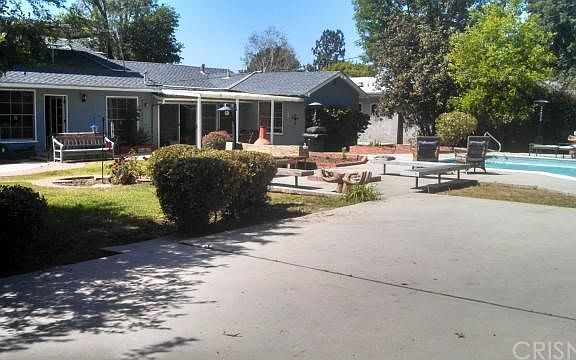5 + 3 Sherwood Forest Ranch Estate with circular driveway on a prime cul-de-sac with POOL!! 5 Bedrooms, 3 Bathrooms and approximately 2933 square feet home on 19,606 square foot lot. Large living room with refinished hardwood flooring, plantation shutters, vaulted wood beamed ceilings, cozy brick fireplace and separate step down den. Family room off the kitchen with second brick fireplace & formal dining room both with custom cabinetry. Large island in kitchen with beautiful view of the rear yard. Bright and open floor plan with many windows and Hardwood floors. Large Laundry room with lots of storage cabinets. Newer roll up garage door. Professionally landscaped yard with lush garden, over sized solar heated pool, basketball court and RV access. The 5th bedroom and bathroom are setup with private patio and separate entrance which is wheelchair accessible. PRICED TO SELL!