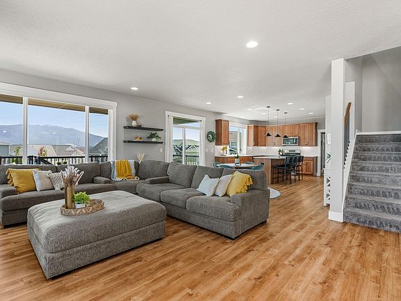 Nestled on a cul-de-sac in the coveted Morningside Heights neighborhood and situated on a fully landscaped oversized lot, this 6 bed, 3.5 bath Greenstone home offers generous space flooded with natural light and boasts a panoramic view of Mica Peak. Upon entering the home, you are greeted by a dedicated office, half bath, and a large open dining and living room that sets the stage for seamless entertaining. The expansive kitchen features dual large pantries, quartz countertops, and stainless steel appliances, which add to the home’s upscale design. The functional mudroom ensures ample storage. Upstairs, the home features 4 spacious bedrooms, all with walk-in closets, including a beautiful primary en suite. Descend to the basement to discover 2 more bedrooms and a full guest bath. Step outside to the lower patio and enjoy the expansive backyard. Hot tub ready, smart zonal air/heat, Tuff shed, 3 car garage, soft close cabinetry, neighborhood park. Don't miss this beauty!