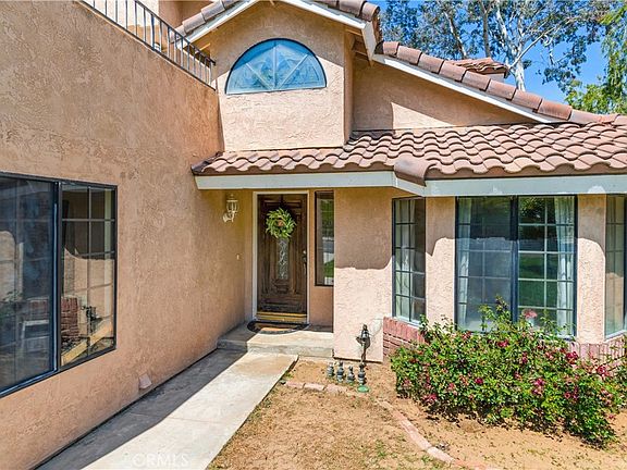 Located in a private cul-de-sac in Mockingbird Canyon, this home features four bedrooms and three full bathrooms situated on just under an acre. Upon entry find the formal living room with a bay window and dining room with tile flooring to your right and the kitchen with breakfast nook and separate family room straight ahead. The kitchen is good sized with granite counters, stainless steel appliances and breakfast bar peninsula open to the breakfast nook and family room. The family room is large and features a fireplace, wet bar and access to the covered patio in the rear yard - perfect for entertaining. Completing the main floor in a main floor bedroom with attached sunroom and private entrance, and main floor full bathroom and indoor laundry room. Upstairs, the primary suite retreat features a brick faced fireplace, private en suite bathroom with separate shower and soaking tub and walk-in closet. The secondary bedrooms are located on the opposite side of the second floor near the remaining full bathroom with dual vanities and are large with ample natural light and each feature direct access to the outdoor balcony. Outside, make your dreams come true on nearly a full acre of land, horses, a garden, whatever your heart desires! You must see this home and make it yours!