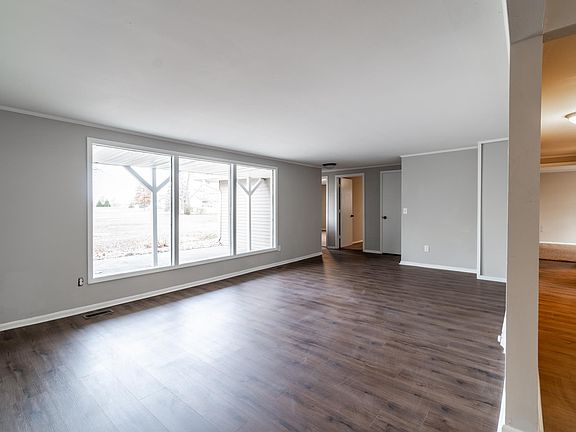 Country living and still close to shopping and entertainment. This beautifully remodeled four bedroom two and a half bath ranch has all new appliances, cabinets and countertops, light fixtures, windows, furnace and central air, paint, flooring, updated septic, electrical panel, garage door and opener on the attached garage, plus a brand new oversized four car garage! All the work is done so you can move in and begin enjoying this completely renovated home and spacious yard! Excellent location that is convenient to northeast shopping, dining, and entertainment. This is an excellent opportunity to purchase a desirable property at a very reasonable price.