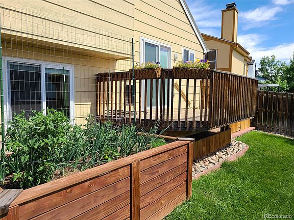 Move-in ready family home within walking distance to the public parks with brand new playground equipment, and elementary and middle schools! This home features 3 bedrooms and 2 bathrooms and a private yard with a 4' x 8' raised plantar bed with a drip system with vegetables that will be ready for harvest soon! The front and back yard have an automatic sprinkler system. The home also features an automatic dog door and a dog run 32' x 6'. The dog run also extends under the deck that measures 14' x 8'. Newly carpeted and spotless home. Over-sized 2-car garage with room for storage 23' x 17'. Garage door opener with laser safety sensors. All closets in the home have extra shelving for storage. The family room features ample shelving and built-in cabinets. All appliances in the kitchen are included with a new microwave, sink and faucet. Newer Milgard Tuscany windows throughout the home with thicker glass for sound insulation. The patio door has blinds inside the glass! Newer blinds throughout the home. Newer 6-panel doors throughout the home with new hinges and door knobs. Newer bathroom exhaust fans. Newer low-flow toilets. Updated light fixtures. Newer child-proof outlets in the home. Wood-burning fireplace on the main floor. Freshly cleaned and sanitized furnace and duct work. Newer hot water heater. Nice mature landscaping front and back. Extensive shopping close by! Nice neighborhood with no HOA. Brand new Central Recreation Center 0.6 miles from home. Great location with very easy access to I-225 and E-470. Don't miss this one!!