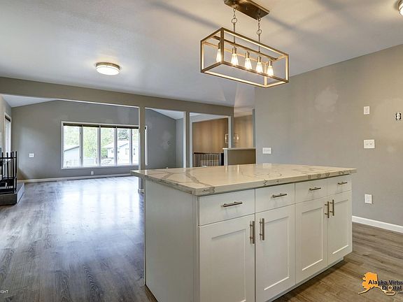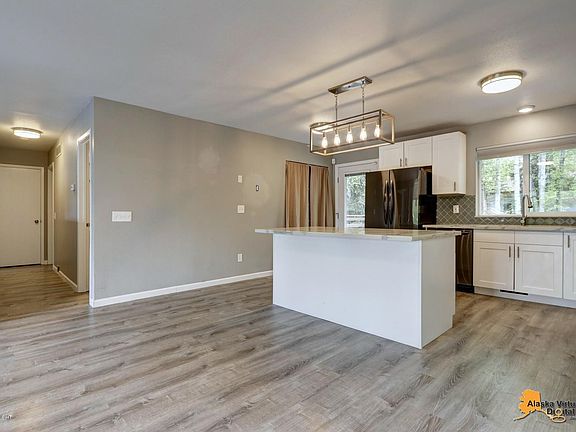 Modern on the inside...Alaska on the outside. Located in a quiet cul-de-sac surrounded by trees. Open concept living with an updated kitchen, bathrooms, & fixtures. The spacious master has a roomy walk-in closet & en suite. Cozy up to the fireplace or cook-out on the massive back deck. Need a hobby? Try a green thumb with the bonus an attached green house. Close to JBER, hiking and so much more!