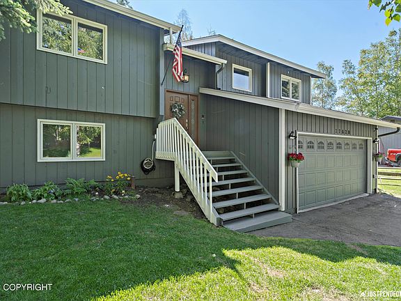 Oh the views! Rare opportunity, enjoy the sounds of the river from TWO sprawling back decks overlooking Eagle River Valley! 4 bedrooms, 3 baths, 2 living areas. New carpet in all bedrooms, updated flooring, new exterior & neutral interior paint, trees have been removed to enjoy the bluff views. Fenced yard w/shed, additional storage area attached to the garage. River access from the back yard!Very close to the middle school with a path at the end of the street. Quick commute to JBER, Palmer and Anchorage. No HOA! You won't want to miss this one.
