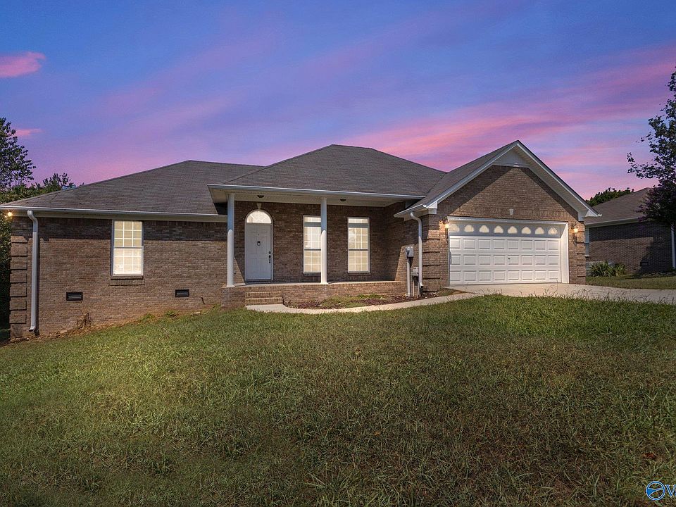 This all brick 3-bedroom, 2-full bath home offers the perfect blend of comfort and convenience. Nestled on a half-acre lot, this 1,598 +/- square foot residence is ideally situated between Florence and Huntsville. Enjoy the peaceful ambiance of country living while being close to urban amenities. Inside, you'll find a cozy living room with a fireplace, a functional U-shaped kitchen, and a spacious dining area for friends and Family to gather.. The fenced backyard with mature trees provides the perfect backdrop for BBQ's or a quiet evening around a firepit. Home is within 5 miles of multiple boat launches!! With a little TLC, this home can be transformed into your perfect retreat.