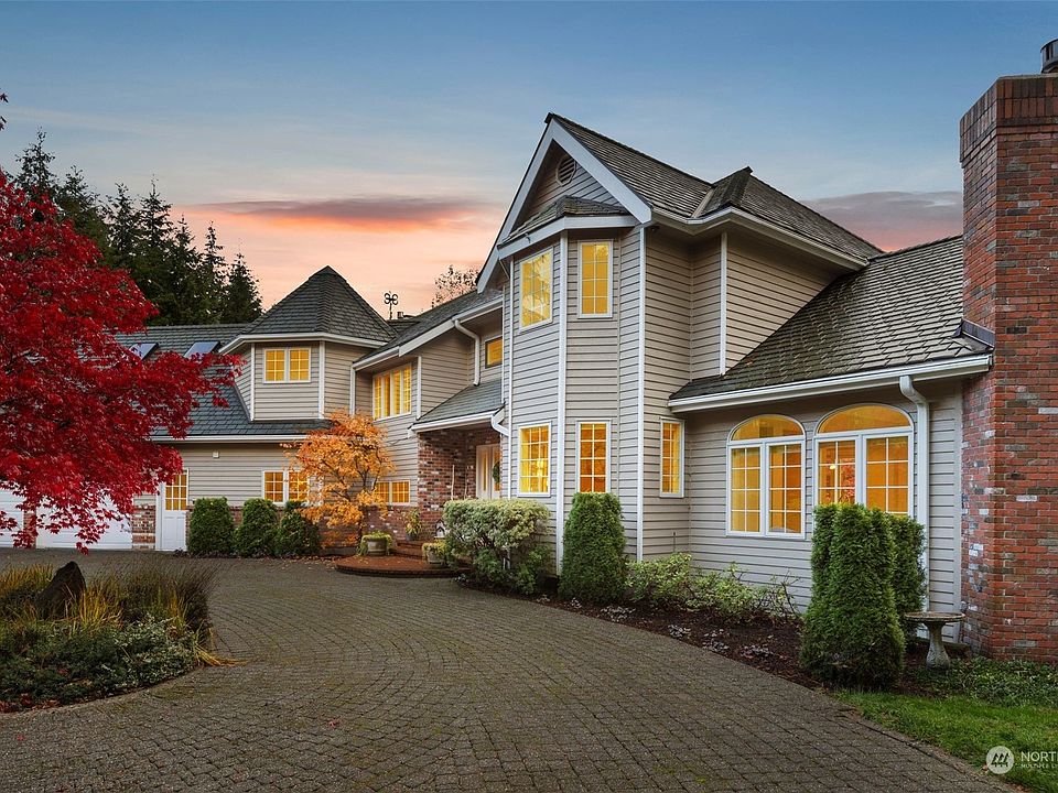 Nestled on a peaceful mountainside within a community of 5-acre estates, this 4,620 sq.ft. custom home offers Mount Rainier views, blending elegance and privacy. A gated entry, circular driveway, and beautiful landscaping frame its timeless architecture, with an oversized 3-car garage for ample storage. This home is perfect for entertaining, featuring a gourmet kitchen and multiple dining and gathering spaces. Each of the 3 bdrm suites includes a private bath, with the primary suite boasting a fireplace, walk-in closets, and scenic en suite. Two add’l fireplaces add warmth throughout. With central AC, generator, and Issaquah School District access, this home epitomizes practical luxury in a prime location between Issaquah and Newcastle.