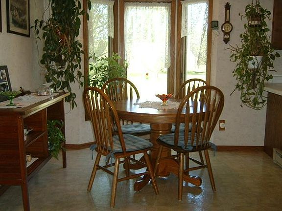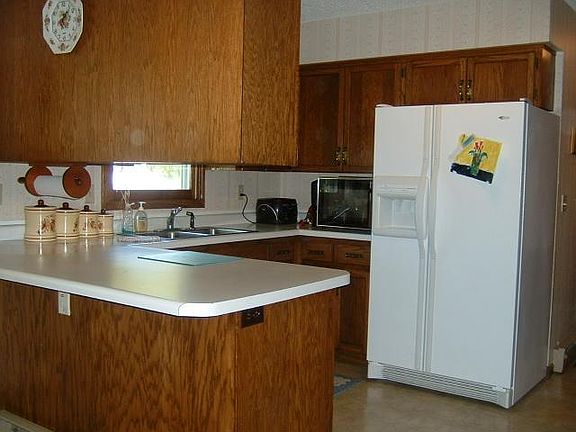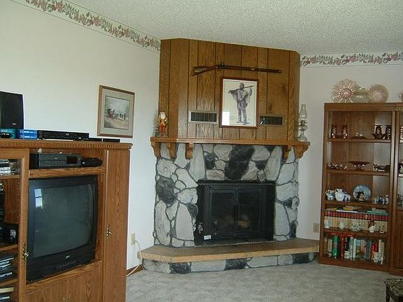 Gas fplc in LR, 2 BR on main & 2 in basement (no egress but larger windows), tons of oak cabinets in kitchen, main floor laundry, picture window in FR, C/A w/off peak elec w/propane backup. Heat in bsmt floor, D/W & fridge 2 1/2 yrs old, 10 x 25 shed w/concrete slab, screened in porch in front, deck in back, apple & plum trees in back. Outside the 4 mile GF extraterritorial zoning.