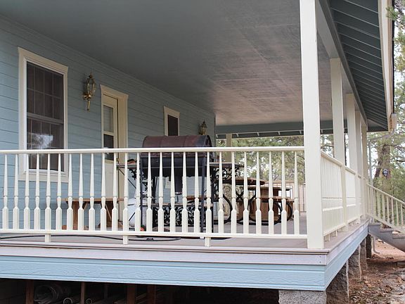 - Exterior Features: Covered Porch/Deck, Tall Pines on Lot, Storage/Utility Shed, Porch/Deck, In the Trees, Covered Patio, View of Mountains, Patio, Panoramic Views, Work Shop, Grill