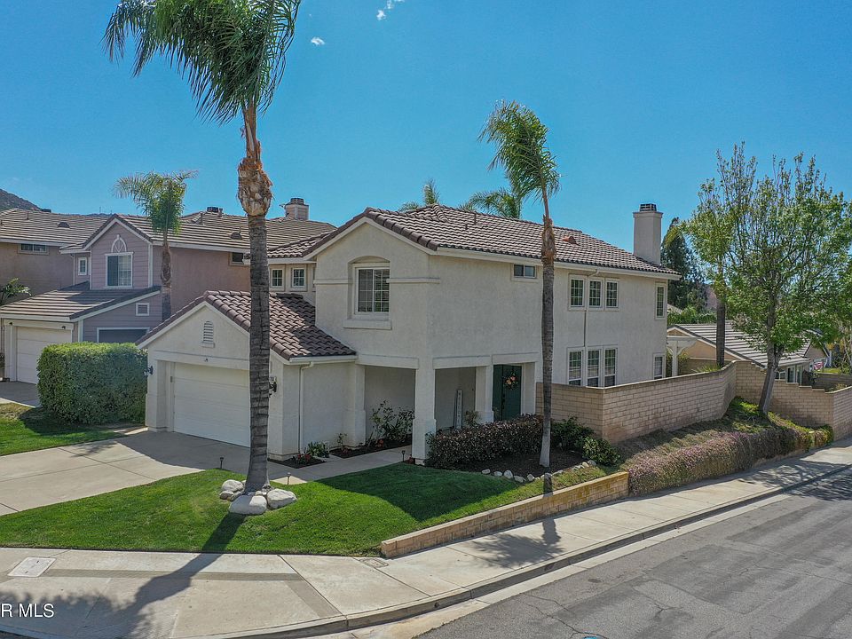 Pristine, light and bright 4 bedroom 2.5 bath home located on a corner lot in the Hopetown neighborhood in East Simi Valley. Exceptionally clean with new rich solid bamboo wood flooring upstairs and upgraded tile downstairs on the main floor. Recently painted in contemporary colors. Updated kitchen features granite counters, stainless steel appliances, recessed lighting, white cabinets and large center island/breakfast bar. The adjacent family room features a warm and inviting fireplace. Huge primary suite has a ceiling fan and large walk in closet. All bathrooms have been updated/upgraded. Two car direct access garage with washer and dryer hook up, built in cabinets and epoxy finished floor. The rear yard features a lovely covered patio overlooking lush landscaping, flowers, automatic irrigation system and tremendous views of the nearby mountains beyond. Great location close to hiking, biking, retail and your commute. Super clean move in ready! Won't last long.