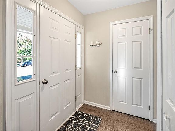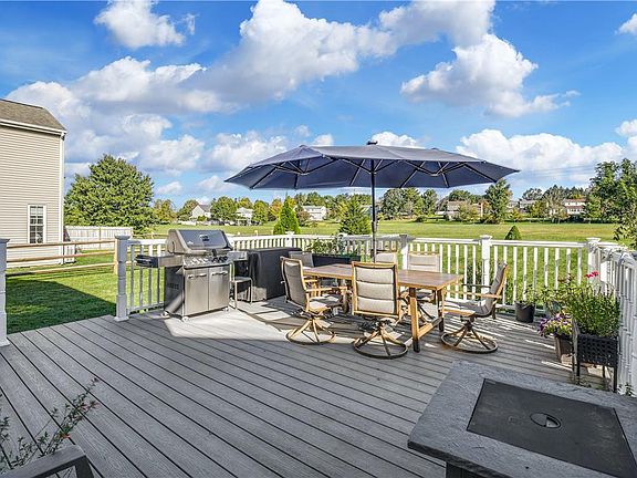 The two-story residence features an open and sun filled floor plan, hardwood floors in many rooms and a neutral décor throughout. A well-appointed kitchen has self-close cabinetry, marble countertops, a peninsula with seating, and slate GE appliances. A vaulted ceiling, spacious walk-in closet and rainfall shower are found in the spacious owner’s suite. Two additional bedrooms share a full bath on the second floor and the finished lower level brings extra living space with an office and recreation room. Outdoors, the Trex deck overlooking the flat back yard is a favorite spot for relaxing and entertaining.