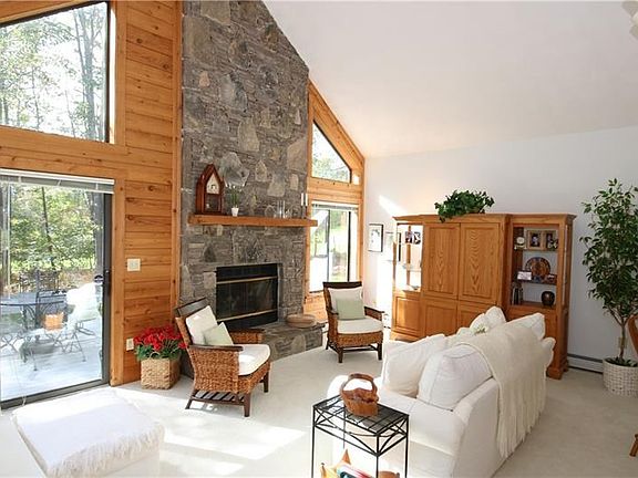 Meticulous Ranch on the 16th Fairway at Hidden Valley Resort. Move right in and don't worry about anything being sold fully furnished, owners provided exceptional care. This home has brand new carpeting throughout and is very well kept. Walk into the enclosed foyer area to keep out all the cold. As you enter into the main area, the beautiful stone fireplace will demand you attention among the wall of cedar. The kitchen has new Corian Counters and Stainless Steel Appliances. The natural lighting in the great room is a refreshing change. The sunken Master Bedroom has private access out onto the back deck, two closets and bathroom. There are 3 additional bedrooms. Highlights of this resort home include a new roof, gas hot water heat, back deck with a wooded setting, pond across the street, one car garage and located on a private dead end street. The HOA will take care of the landscaping, offers recreational amenities such as the pools, tennis courts, playgrounds and much more.