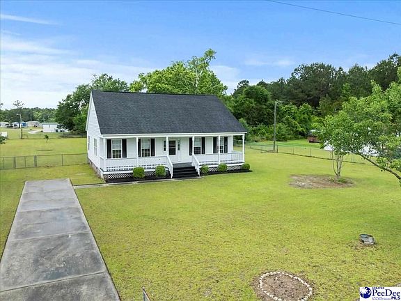 Charming 3BR/2BA ranch-style home on a spacious 0.75-acre lot with no HOA and no city taxes. Located between Marion and Mullins just off Hwy 76, this home offers convenient access to I-95, Florence, and Myrtle Beach. Featuring 1,348 heated sq ft, this vinyl-sided home includes a large covered front porch, concrete driveway, and fenced backyard. The single-level layout includes a bright living area, eat-in kitchen, and generously sized bedrooms. Enjoy country living with close proximity to shopping, schools, and medical facilities. Ideal for first-time buyers or those looking to downsize. USDA eligible. Don’t miss this move-in ready home in a peaceful, accessible location!