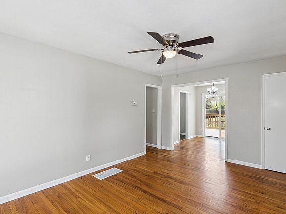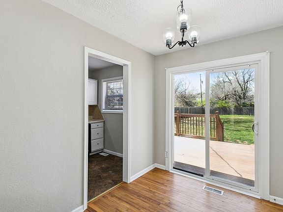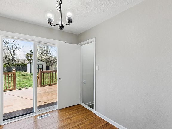 Located in northeast Wichita, this beautifully updated ranch home has a surprising amount of space within. Step onto the covered front porch, where there's room for a porch swing, perfect for relaxing evenings. Inside, the living room welcomes you with bright windows and a paned front door, filling the space with natural light that complements the gleaming hardwood floors throughout. The formal dining room features sliding glass doors leading out to the back deck, ideal for entertaining guests. The kitchen boasts stylish white cabinets, tiled backsplash, and included appliances, making meal prep a breeze. Three bedrooms and a full bath on the main floor provide comfortable living spaces. Downstairs, the basement offers a huge family/rec room, suitable for a home theater or game area with enough space for a ping pong or pool table. Additionally, there's a large bonus room perfect for a home gym, playroom, office, hobby area, or whatever else you can dream up. Outside, the back yard is surrounded by a wood privacy fence, offering a secluded retreat. Enjoy the warmer months on the spacious deck. There's also a storage shed for your tools and lawn equipment. Located near Wichita State University, unique restaurants and shops in College Hill, several parks, and more, this home is conveniently close to everything! Schedule your private showing and hurry in to see this one today before it's gone!