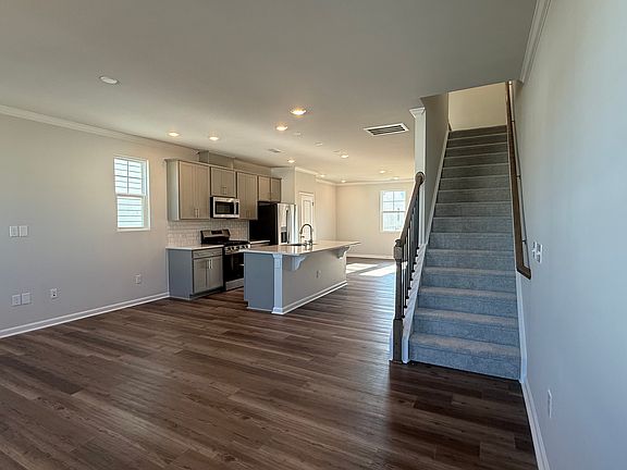 This new three-story townhome is designed for ease and comfort, with a secluded first-level bedroom. The second level has an open-plan main living area and a deck for sipping sweet tea. Both third-level bedrooms, including the luxe owner's suite, have walk-in closets.