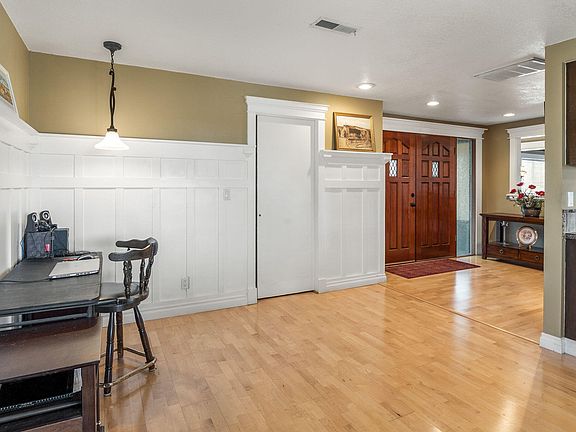 Nestled along Redmond's picturesque Dry Canyon Rim, this unique two-story residence boasts mountain and canyon views. Situated on a generous .45-acre lot, it offers ample space for RV parking. Classic architectural touches include a grand double-door entry and elegant tall wainscoting in the dining area. The main floor features a spacious primary suite for added convenience. Enjoy the luxury of a wrap-around deck and lower patio, perfect for soaking in the scenic surroundings. With both bathrooms recently remodeled, this home exudes timeless charm while offering modern comfort. Conveniently located near a host of recreational activities including pickleball courts, a dog park, ball fields, and more, it promises a lifestyle of both relaxation and vibrant activity.