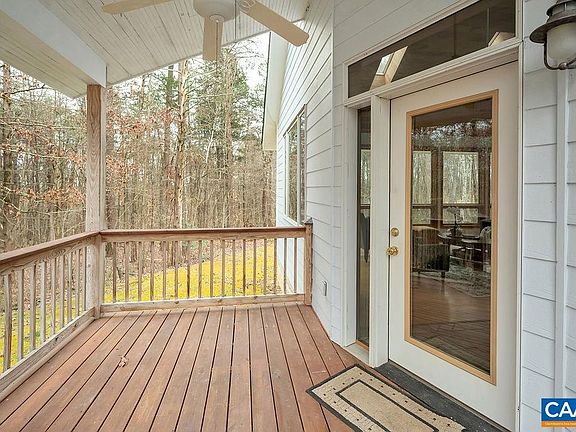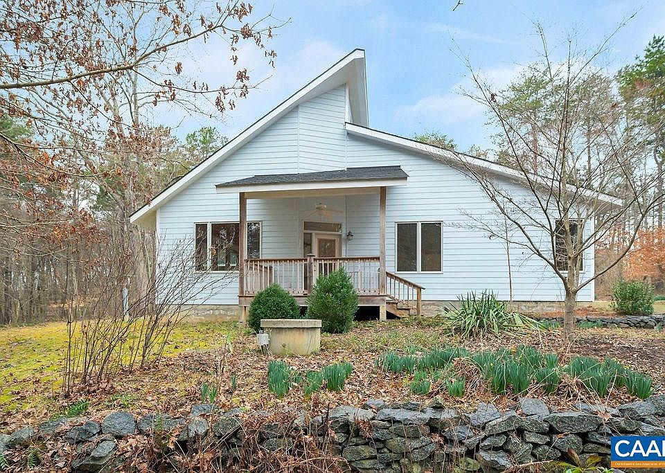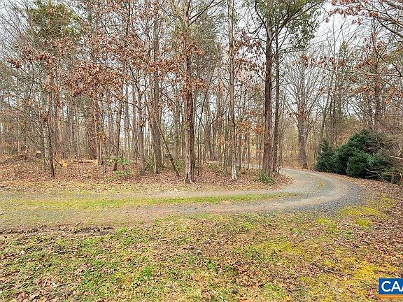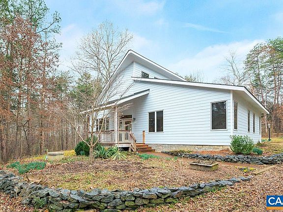 Tranquil contemporary oasis on 9.51 private acres near some of the areas most popular wineries/taprooms. Situated only 20 min to Charlottesville & 15 min to Scottsville, this quality custom built home has an open floor plan with 22 foot wooden vaulted ceilings, Pella windows & tons of natural light. Relax in peaceful surroundings of native mature landscaping while bird/wildlife watching from the screened porch. This one level retreat includes bamboo floors, Corian counter tops, large laundry/mud room, bath with heated floors & an attic for plenty of storage. Abundant energy upgrades including spray foam insulated roof & walls, a concrete floor crawl space, new well in 2014 with TEN GPMS, & new heat pump in 2016. Property features a large workshop with 20 ft. ceilings, windows for natural light, electric, water & conveying wood stove. Two 12x20' sheds are on either side of the workshop for storage. Don't miss the raised bed gardens as well as two additional garden areas & the intermittent stream below the house with wooded hiking trail along the back edge of the property. Welcome home to complete soothing privacy!