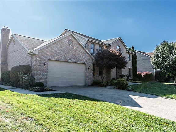 Extra nice brick 2 story offering 4 bedrooms, 3 1/2 baths, updated kitchen w/white cabinetry, stainless appliances and Quartz countertops. New vanity and mirrors and new carpet. Enjoy golf course and lake view from your in-ground pool. This home is situated on a cul-de-sac street, convenient to Rt 18 and I-75.
