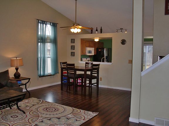 Welcome to this contemporary Tri-Level in Tollgate Village! Where you will step into a huge living and dining room combo area with vaulted ceilings, newer beautiful engineered wood flooring and all neutral paint. The kitchen is just beyond and a cut-out into the dining area with access to the patio with slider from the kitchen. The lower level has the family room and a bedroom with French doors (could be an office) plus a 3/4 bath. The upper floor has two bedrooms and a shared bath with double sinks and separate shower area. The large yard and a dog run on the side. 2 car garage with easy access to public transportation, shops and schools near by!