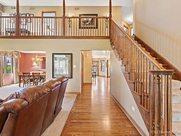 Multiple offers received, highest & best offers due by Friday, 5/26 at 2:00PM. Welcome home to this gorgeous 2-story home in the coveted neighborhood of Radcliffe Place! You will be greeted by cathedral ceilings and an open concept enhanced by a spectacular outside entertainer's delight. There are 5 bedrooms, 2.5 baths plus roughed-in plumbing for a basement bath. The kitchen provides plenty of storage and includes beautiful glazed custom cabinetry, granite counters, walk-in pantry and stainless-steel appliances. The cozy, sun-kissed family room features a gas fireplace and the adjacent 5th bedroom is located on the main level which is currently being used as a home office with a beautiful built-in desk. The 2nd story features 4 spacious bedrooms with walk-in closets and 2 full baths with double sinks. The master feels like an oasis with it's cathedral ceilings, wooden beams, large windows, walk-in closet and a full bathroom complete with a separate shower and jetted tub. The exterior of the home features a gorgeous brick patio, pergola and heated pool with a maintenance free Trex deck, and a custom brick fire pit. This home is complete with a 3 car garage. The kitchen appliances were replaced in 2017, new 75 gallon hot water tank in 2018, pool was installed in 2016 and had had a new liner in 2022. Move in just in time for your summer gatherings! Don't delay, this home will not last!