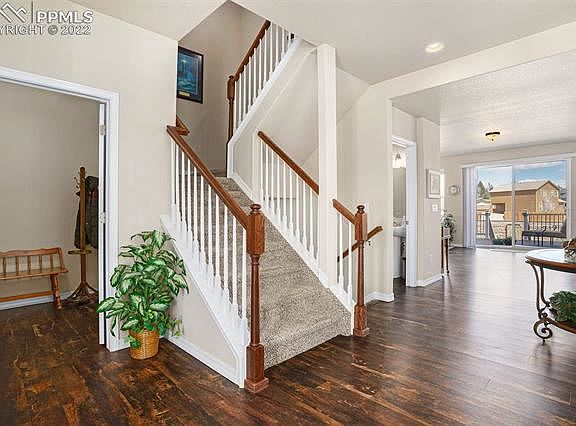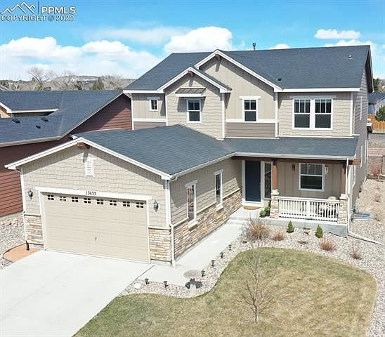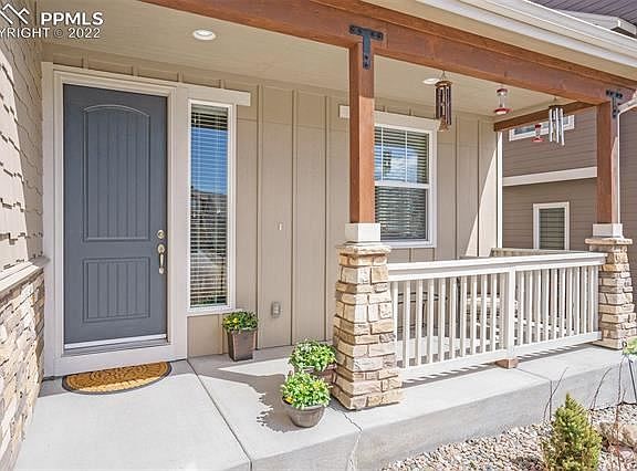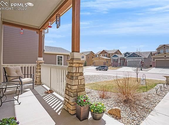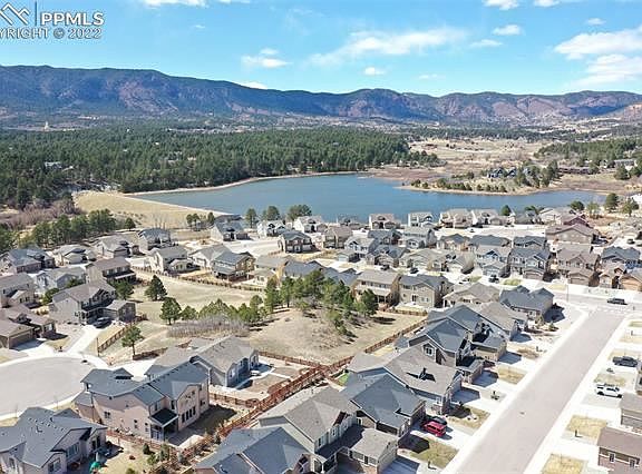 On west side close to Rocky Mountain front range w/ foothill access & scenic views! This is a most desirable area w/ endless walking/hiking/biking trails near Mt. Herman, Pike National Forest, Santa Fe Trail, fishing at Lake Monument, & walking distance to restaurants/shops in downtown Monument. Easy walking distance to town park w/weekly concerts w/ live bands/food trucks all summer! This immaculate 2-story Lake of the Rockies home has open floor plan. Inside the foyer is a main level office or formal dining. Rich hardwood flooring, gas FP w/ large picture windows & lots of space for entertaining. Gourmet kitchen w/ abundant counter space, walk-in pantry, granite countertops & stainless-steel appliances. Stove is also plumbed for gas. Entertain on a spacious walk-out deck, constructed w/ long-lasting Fiberon decking & low-maintenance Trex railing/trellis & solar lighting & space for a fire pit. Upstairs has 4 bedrooms plus laundry rm for easy access. Spacious master bedroom connects to a luxury-designed bathroom w/ mountain views, large walk-in shower w/ bench & dual shower heads, additional soaking tub, & walk-in closet. Two of the other bedrooms have a connecting bath w/double sinks, private shower/toilet siblings can easily share. The basement is spacious for storage or can be finished to fit your lifestyle & pre-plumbed for additional bathroom. Upgrades include 9 ft. ceilings, upgraded lighting, clear window-well covers for allowing more ambient light, bull nose corners, & custom blinds throughout. Sprinkler system in both front & back yards w/drip system. Backyard is fully xeriscaped to display favorite ornamental evergreen trees, plants, & flowers from spring to fall. Deck gates included. Wonderful community neighborhood watch program, open space for children to play, lake access for fishing, kayaking, paddle boarding, & fun in the sun. Low-maintenance & lush Kentucky bluegrass lawn, so more time to spend enjoying your time in the sunshine 300 days a year.