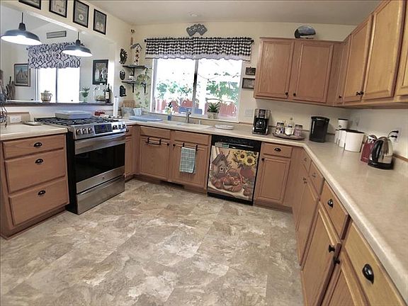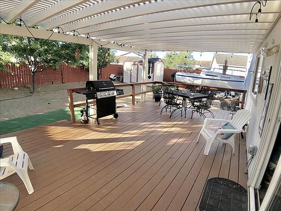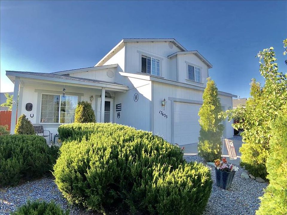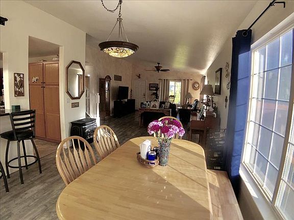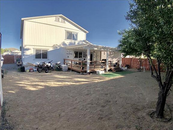 Open floor plan with lots of natural light throughout this lovely home. 5 bedrooms and 3 bathrooms - room for everyone. One bedroom downstairs could be used a master bedroom or mother-in-law quaters, along with the main master bedroom upstairs - each with walk in closets and organized storage. Laminate floors on the main level. At the top of the stairs you will find a room with french doors that can be a bedroom, office, den, etc. Backyard host a covered deck deck/patio with mature fruit trees. There is plenty of room for RV parking and toys. Easy access to BLM land for exploring.