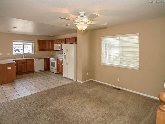 Free standing home, HOA fees take care of landscaping, snow and trash removal. Covered porch. Nice, open floor plan with lots of light. The great room opens to the kitchen with spacious dining area and access to the patio. The master suite with large walk in closet boasts a private sitting area with fireplace. There are two additional bedrooms on this level. Air conditioned. Crawl space approx 4' high under main level of house. Easy access to I 25 = Denver & Colorado Springs