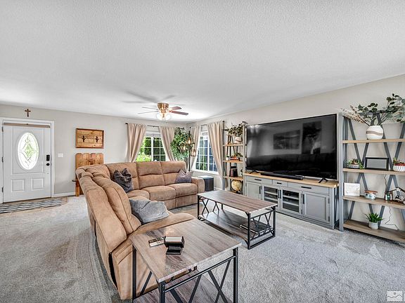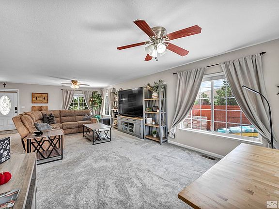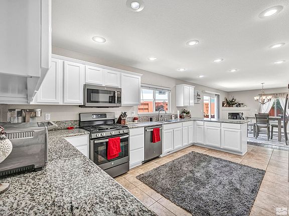 Welcome to this beautifully updated 5-bedroom, 2.5 bathroom single family home with an open concept floor plan that seamlessly connects the kitchen, dining room, and living room, creating a great room ideal for entertaining. The newly renovated kitchen is a modern chef's dream with white cabinets, granite countertops, and sleek slate appliances. An additional room off the kitchen could be an office, additional walk-in pantry or a large wine cellar., The generous primary suite and four additional large bedrooms provide ample space for family and guests. Recent upgrades include new flooring (2019) and fresh interior and exterior paint (2020), ensuring a move-in ready experience. The sprawling backyard is an oasis of relaxation with a grassy flat yard, fully fenced, an 8' x 12' utility shed, and a gas-plumbed fire pit, perfect for cozy evenings under the stars. You'll be captivated by the breathtaking mountain views and the expansive three-car garage. The large side yard offers paved RV parking with 50 amp service, accommodating all your recreational vehicles and toys. This lovely Cold Springs neighborhood is walking distance to Cold Springs Middle School, Michael Inskeep Elementary School and the newly built Cold Springs Family Center which includes a fantastic gym, community events and after school programs.