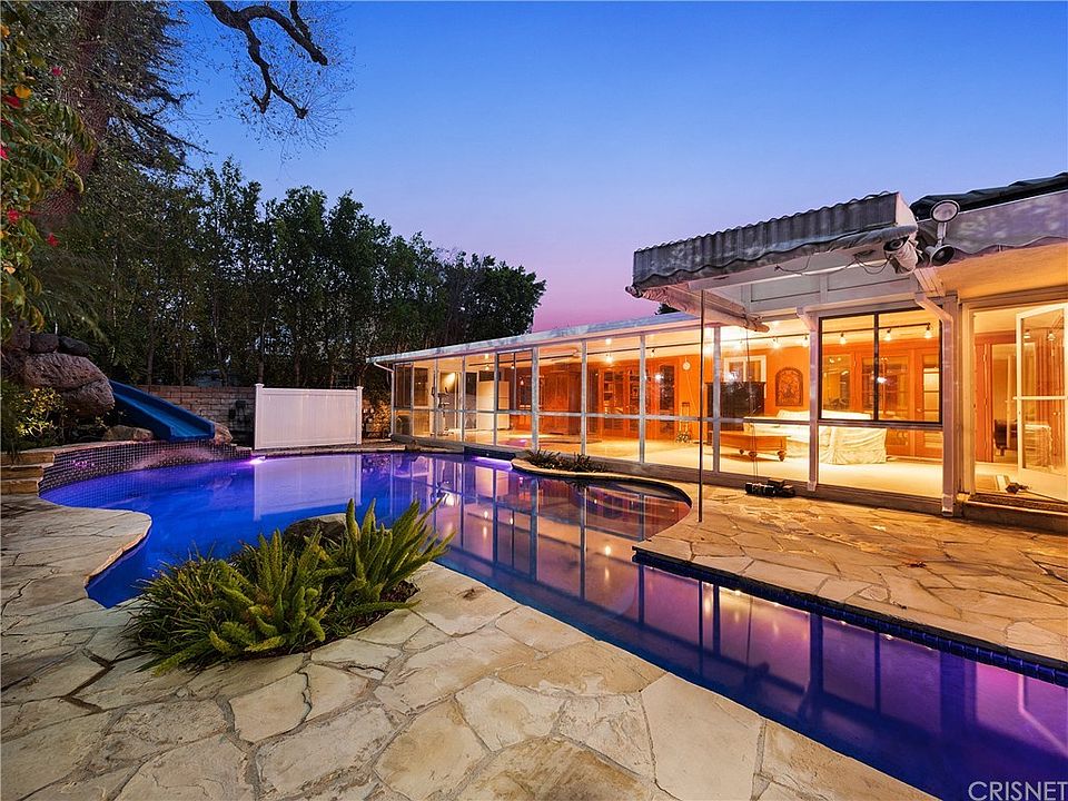 Desirable Mid-Century Modern estate located in Encino, south of the boulevard. Gated and newly remodeled this 5 bedroom 3.5 bath home is ready to be enjoyed. Private, open and bright. The home is 3,495 Sf Ft. and features a large glass enclosed patio with views of the pool from kitchen, family and master bedroom. Gorgeous hardwood floors, kitchen with top of the line, new stainless appliances (6 burner Viking stove, Viking refrigerator, Bosch dishwasher) and Granite counters. 2 gas fireplaces in living room a fireplace in the master bedroom. The updated fifth bedroom features a bathroom, lock off, living room and its own separate entrance. Enclosed, flat back yard. Minutes to shopping, restaurants and schools. Easy access to the Westside and the beach.