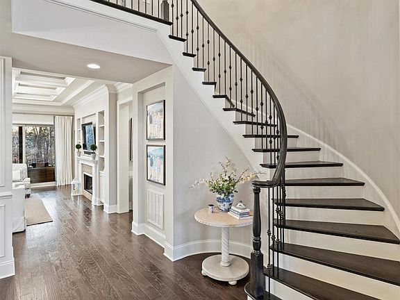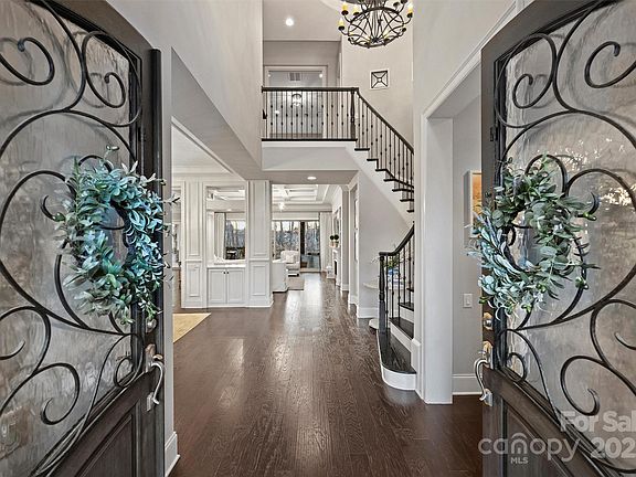Exquisite custom estate in the sought-after Reserve at River Run Country Club. A double-door entry welcomes you to an elegant curved staircase, detailed dining room, and a tucked-away office that can serve as a bedroom with cathedral ceiling. The open-concept living area features a redesigned kitchen island, gas range, farmhouse sink, hidden push-through pantry, two dishwashers, and custom lighting. The primary suite is a luxurious retreat with a clawfoot tub, dual vanities, and an indulgent steam shower. Smart home technology includes a built-in security system, upgraded sound system, and CAT5E wiring. Ample storage includes a walk-in space above the three-car side-load garage. A panoramic sliding door opens to a covered patio with a grill and fireplace, overlooking the heated pool, spa, and private putting green. This serene lot backs to an HOA-owned wooded area and tree preserve, ensuring ultimate privacy. River Run offers premier golf, tennis, trails, and more in vibrant Davidson.
