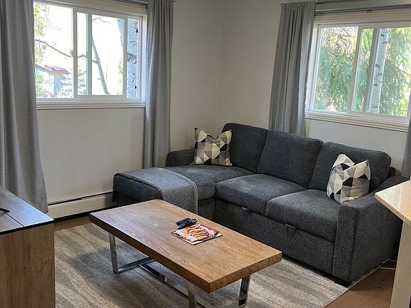 Small but cozy 1 bedroom apartment. Live with no roommates! Easy short walk to a free in town bus stop. 1 assigned parking spot, all utilities are included, even wi-fi. Coin operated laundry in the common area of the building. Furnished, No pets, no smoking inside. Lease is April1 -through November only. 1st, and deposit to move in. Lease is only through November.