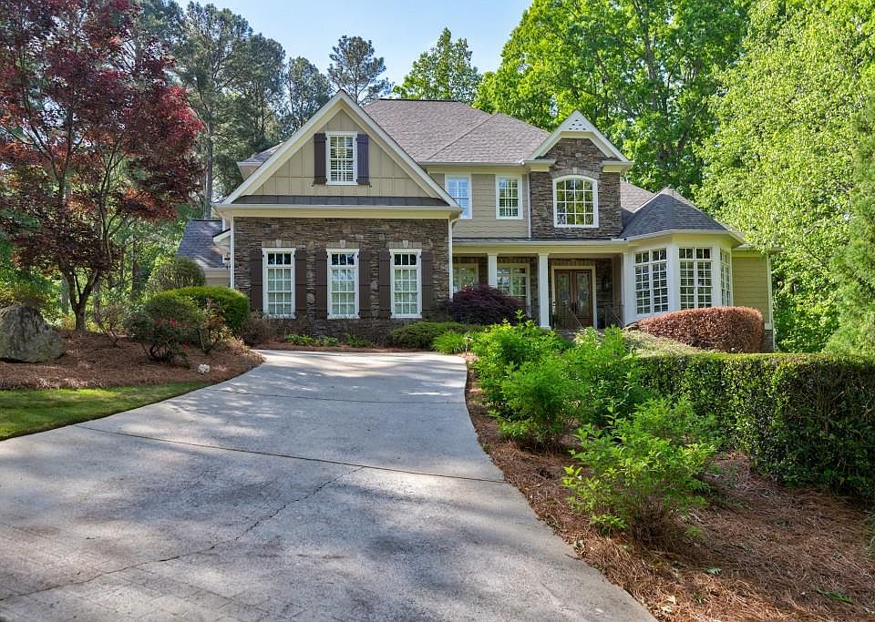 Travel thru the gates of The Enclave at Bishops Hollow, past the community tennis court, putting green and sand trap to a 2 acre oasis in the heart of East Cobb. The custom stained double doors with glass detail welcome you. You're greeted by a large two story foyer flanked by a home office with cathedral ceiling and expansive dining room fit for a dinner party of 10. Continue into the formal living room with floor to ceiling windows overlooking a custom natural stone multi-level water fountain surrounded by the privacy of woods lining the property. The expansive entertainer's kitchen includes a raised dishwasher, ice maker and warming drawer along with a buffet wall for serving and storage. In the second living space, look up to the stunning shiplap vaulted ceiling featuring floor to ceiling windows, fireplace and access to your outdoor entertainment area. That same ceiling detail extends into the private screened in porch of your dreams! Complete with an artfully designed stone fireplace, dining and living space with the continuation of the speakers from the interior, this outdoor living space will be the favorite room of the house! The thoughtfully placed uplighting that is giving an extra glow to the ceiling can also be found in other spaces around the home as well. An expansive owner's suite can be found on the main floor as well as a second on the terrace level along with an additional room wired for to be a theater room, a living room with fireplace and a private patio with water feature that continues on to the pool room and gym area. The upper level has 3 additional bedrooms and a bonus space to be used for anything from sewing or art room to additional office or craft room, etc. Come see what makes this East Cobb hidden gem such an incredible home!
